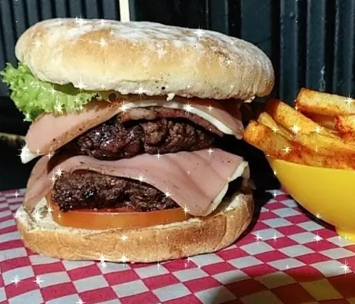 Doble Carne, verduras, jamón, queso, tocineta y papas a la francesa